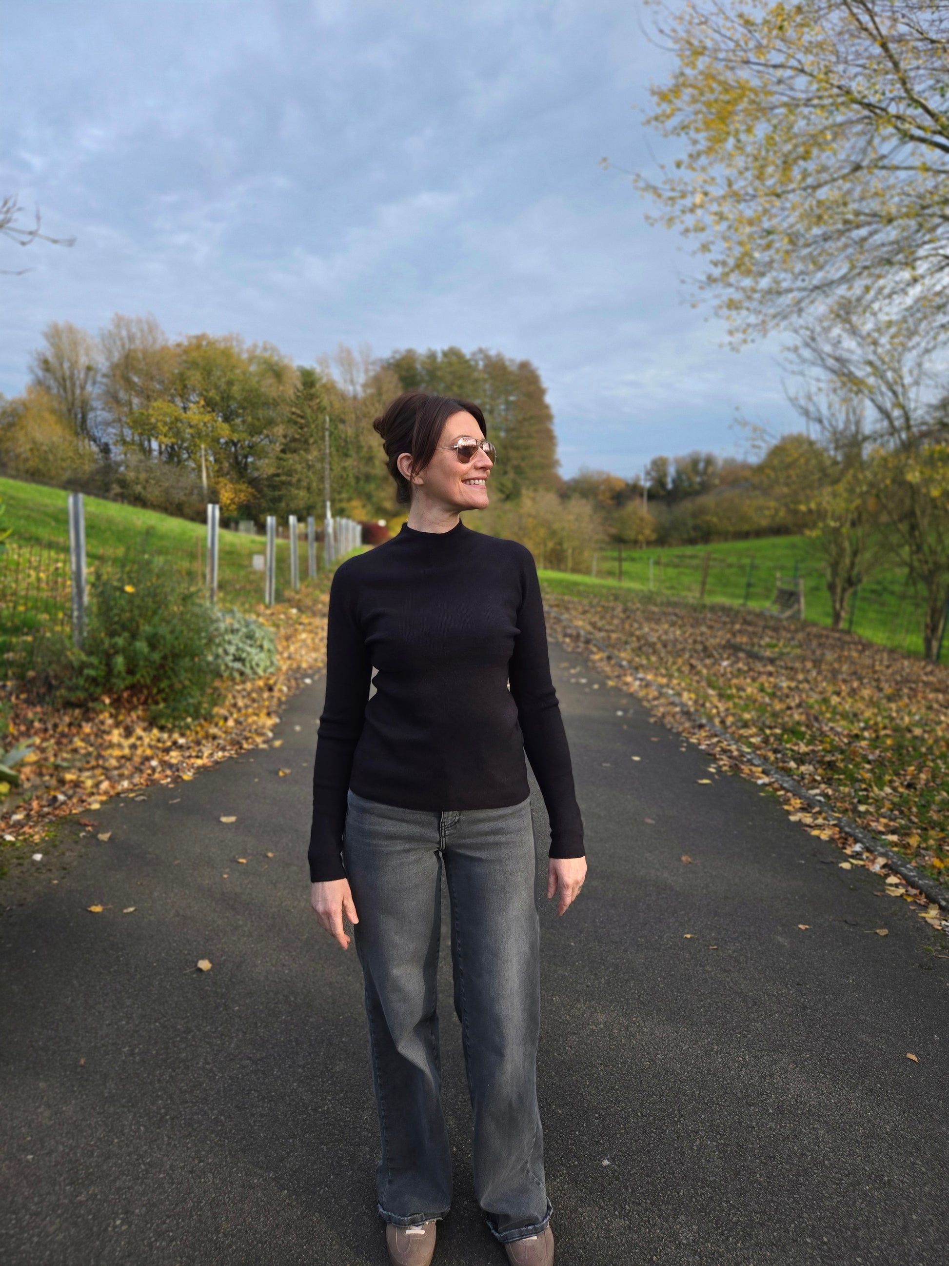 Sarah mesure 1m66 et porte habituellement la taille 34/36