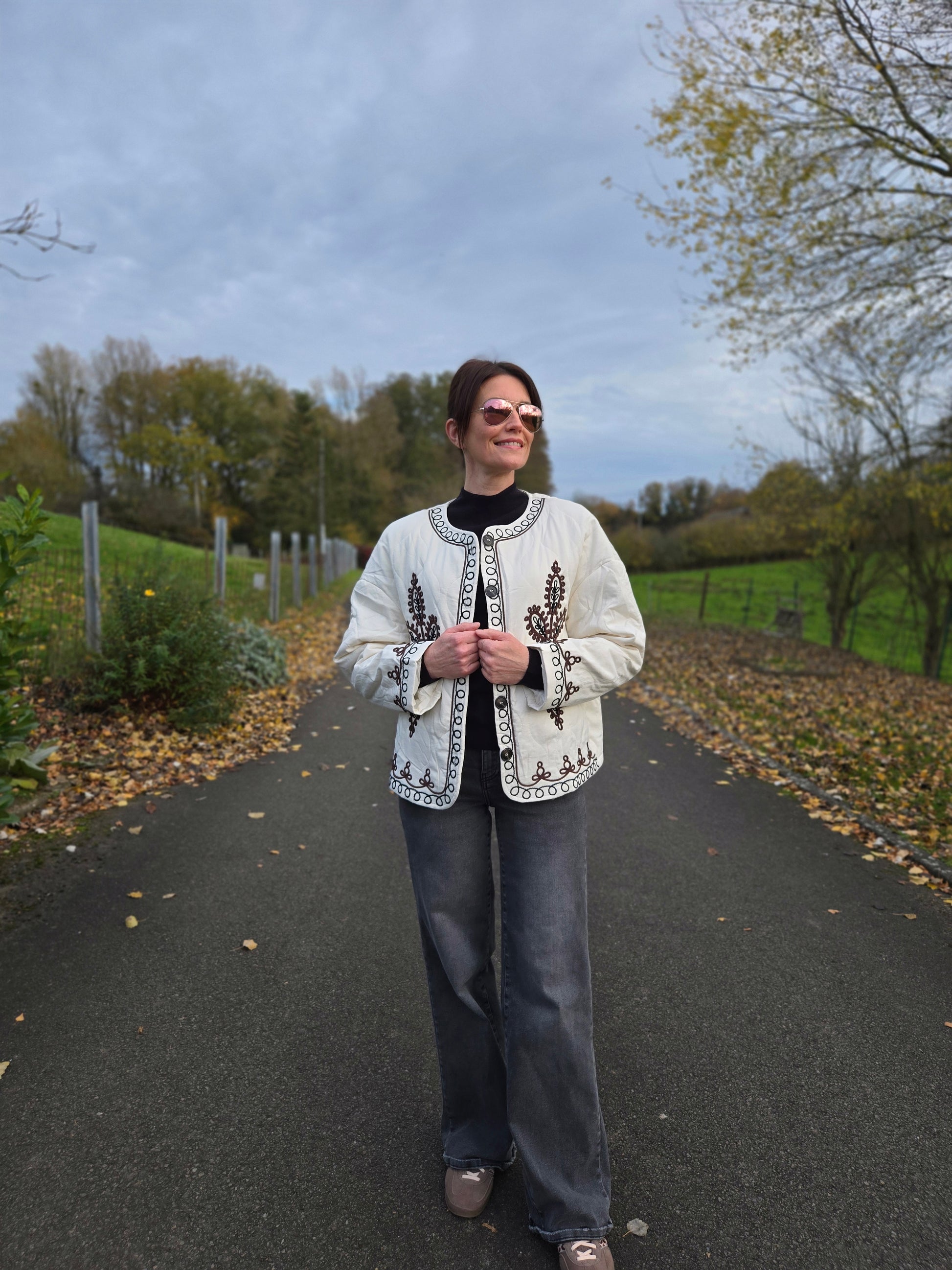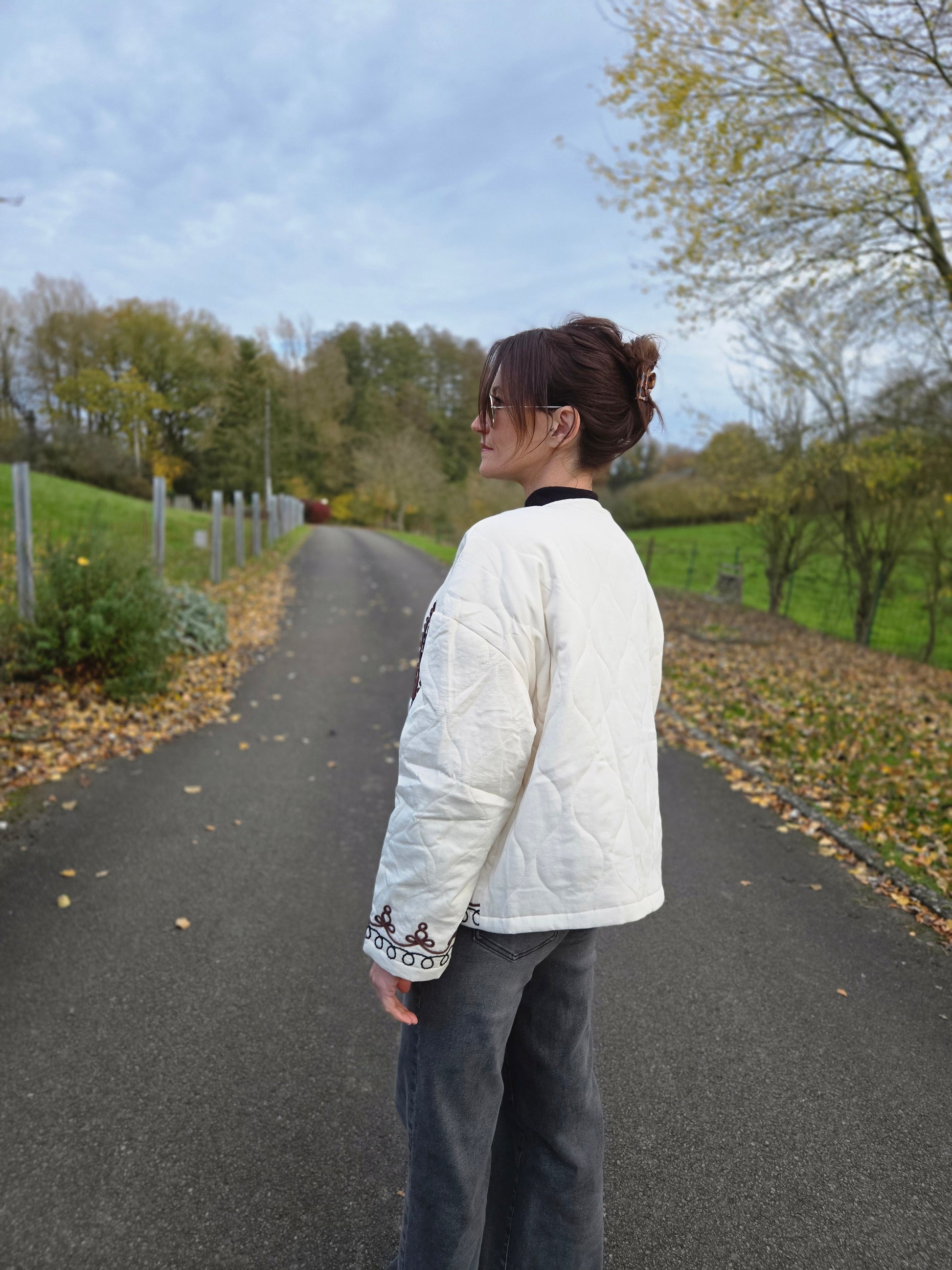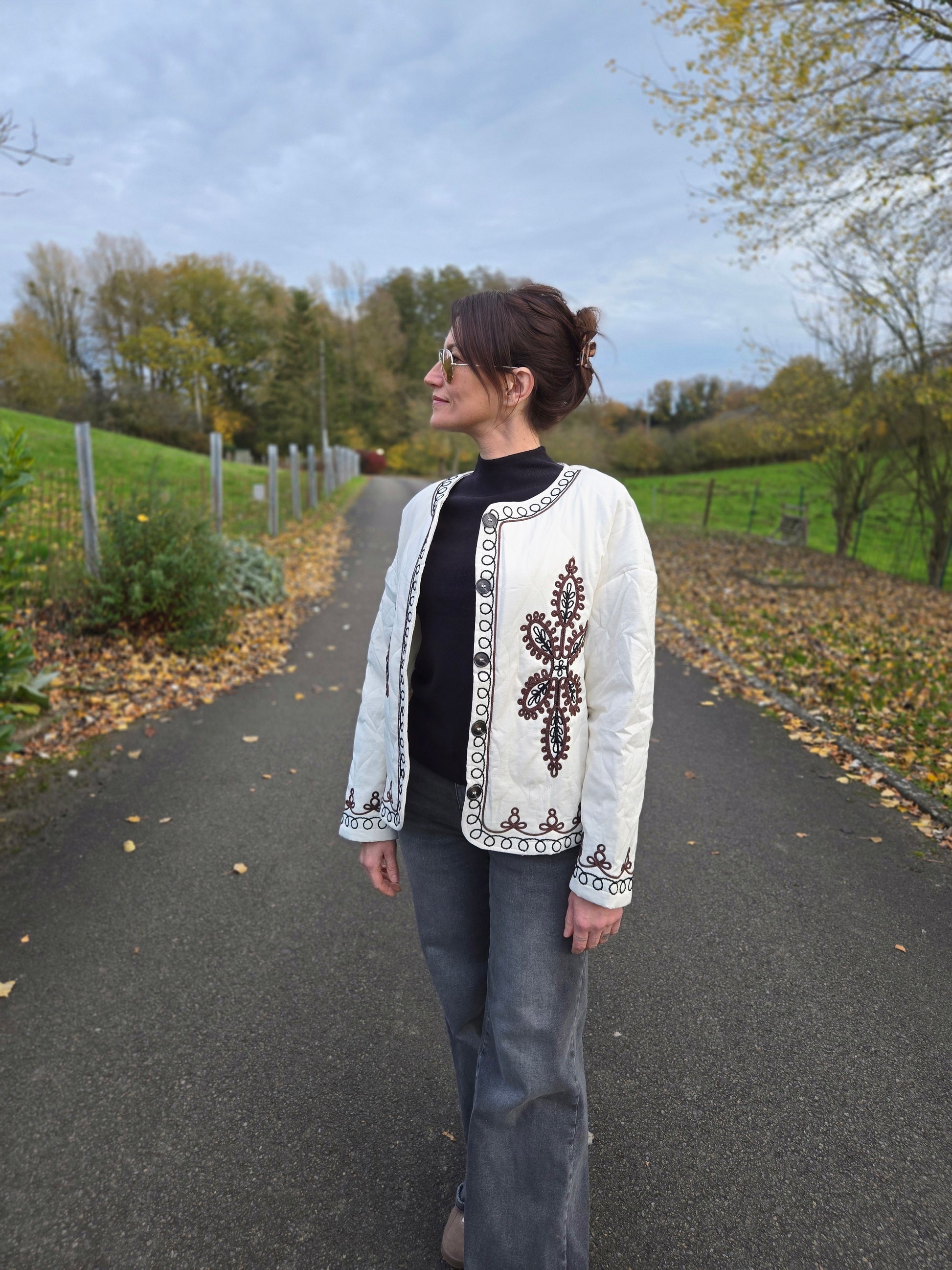 Veste matelassée avec broderies. Crème